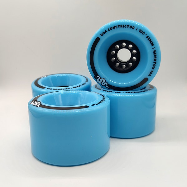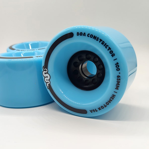 The Boa Constrictor 100mm Longboard wheels are 65mm wide with a 62mm contact patch due to the rounded lips at the front.